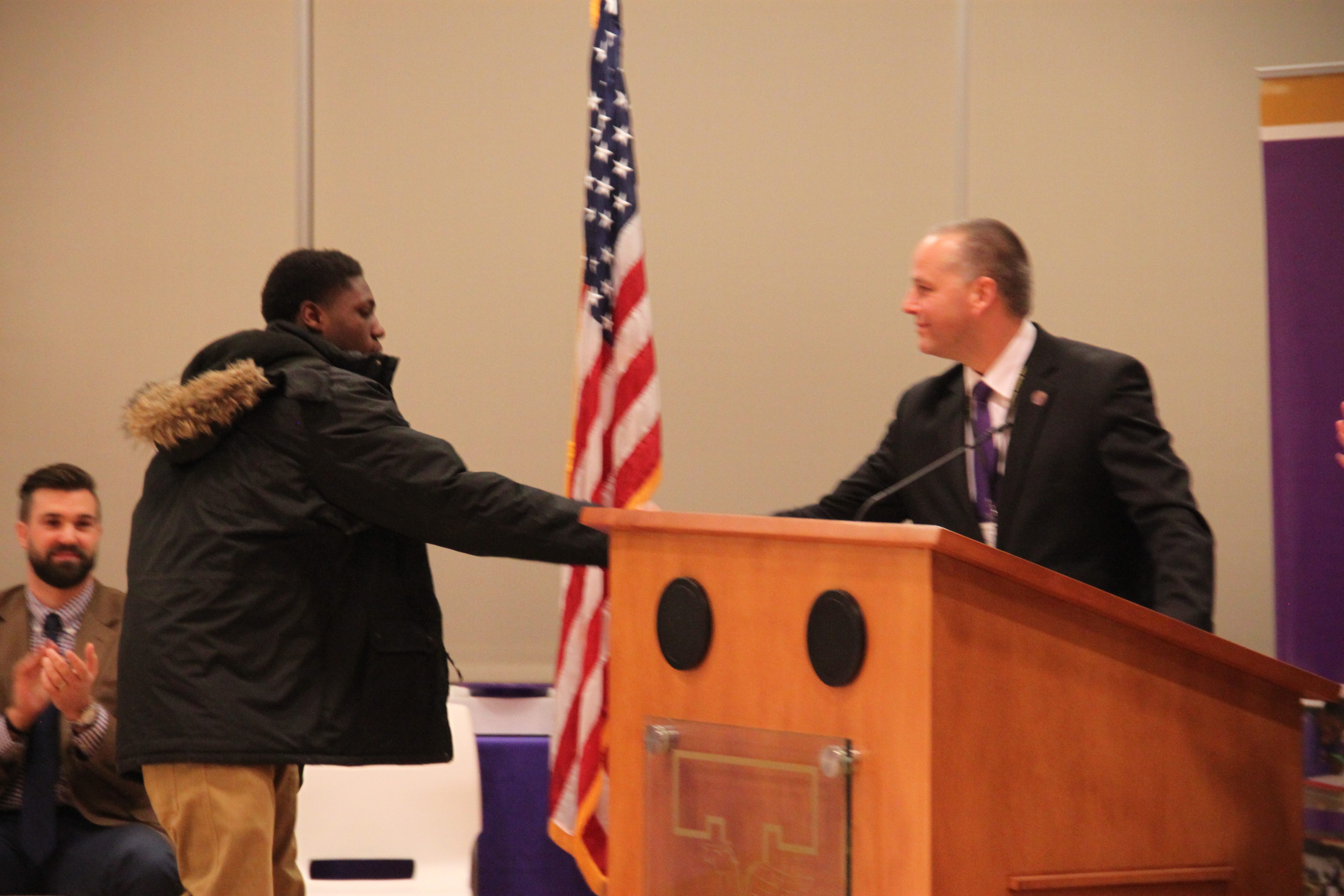 “I sent a text to my son on New Years Day about goals,” said Carmello. “It was a quote that said, ‘Some people dream of success, other people wake up every morning and make it happen,” and the Troy High football team wakes up every morning to make sure they’re successful. So, I’m proud of you for that and congratulations for all you’ve done.”