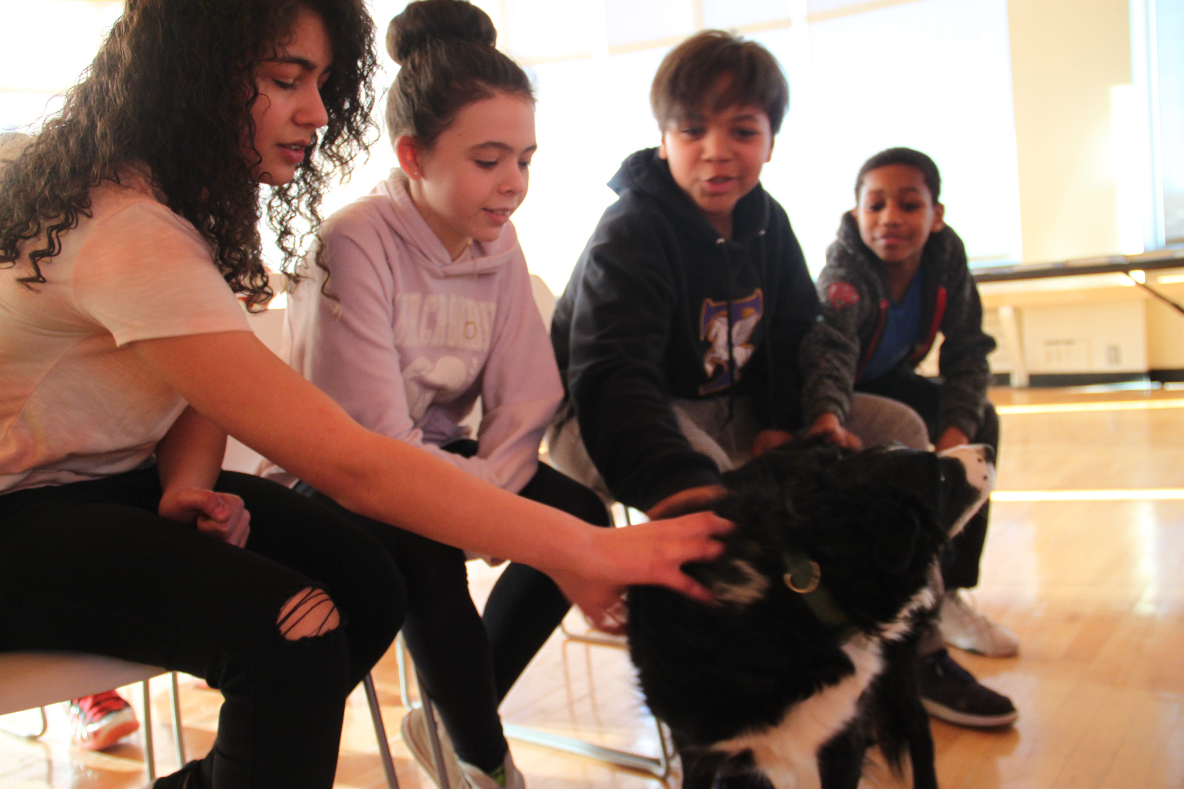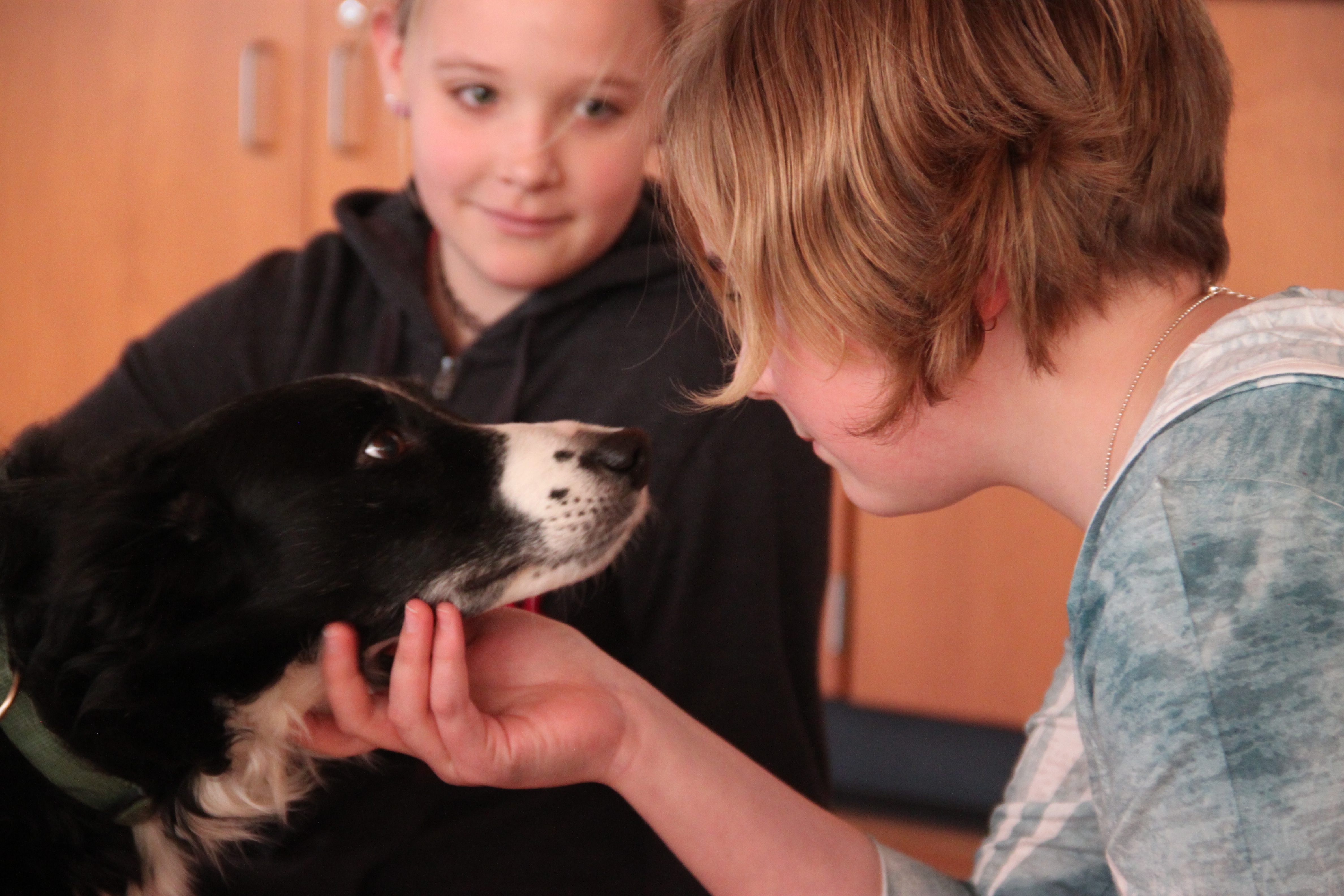 Sixth grade students at Troy Middle School made a new furry friend this week. Her name is Skye and she is a Border Collie who helps chase wild geese off the athletic fields behind the TMS/THS campus.
