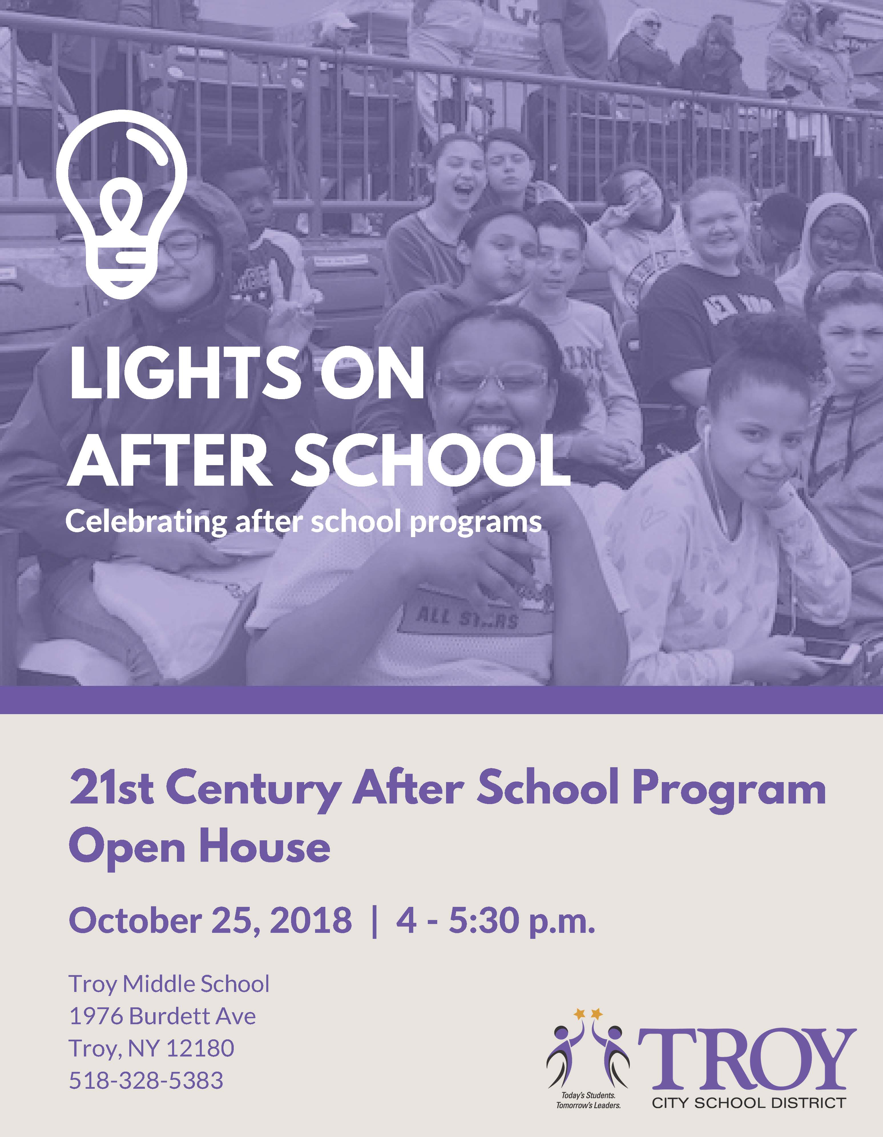 This program supports the creation of community learning centers that provide academic enrichment opportunities during non-school hours for children, particularly students who attend high-poverty schools. The program helps students meet state and local student standards in core academic subjects, such as reading and math; offers students a broad array of enrichment activities that can complement their regular academic programs; and offers literacy and other educational services to the families of participating children. http://www.troycsd. org/programs/21st-century- after-school-program/ At Troy CSD, the 21st Century After School Program supports more than 600 students in Grades 5-8.