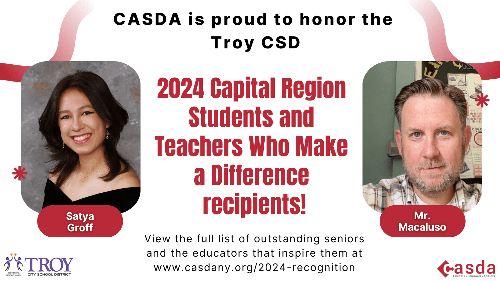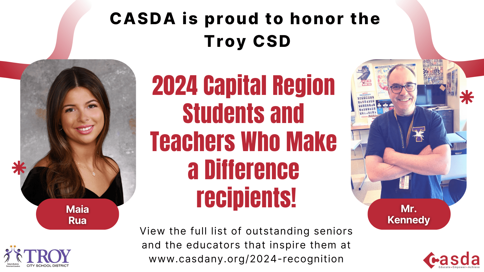 We are pleased to share that the Capital Area School Development Association (CASDA) recognized two THS teachers and students as “2024 Capital Region Students and Teachers Who Make a Difference”!