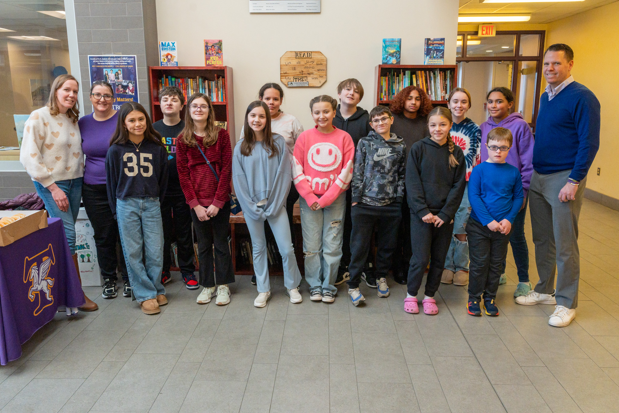 Looking for something to read at TMS? Last week, students, staff and PTO representatives cut the ribbon on the school’s new Little Free Library in the main lobby!