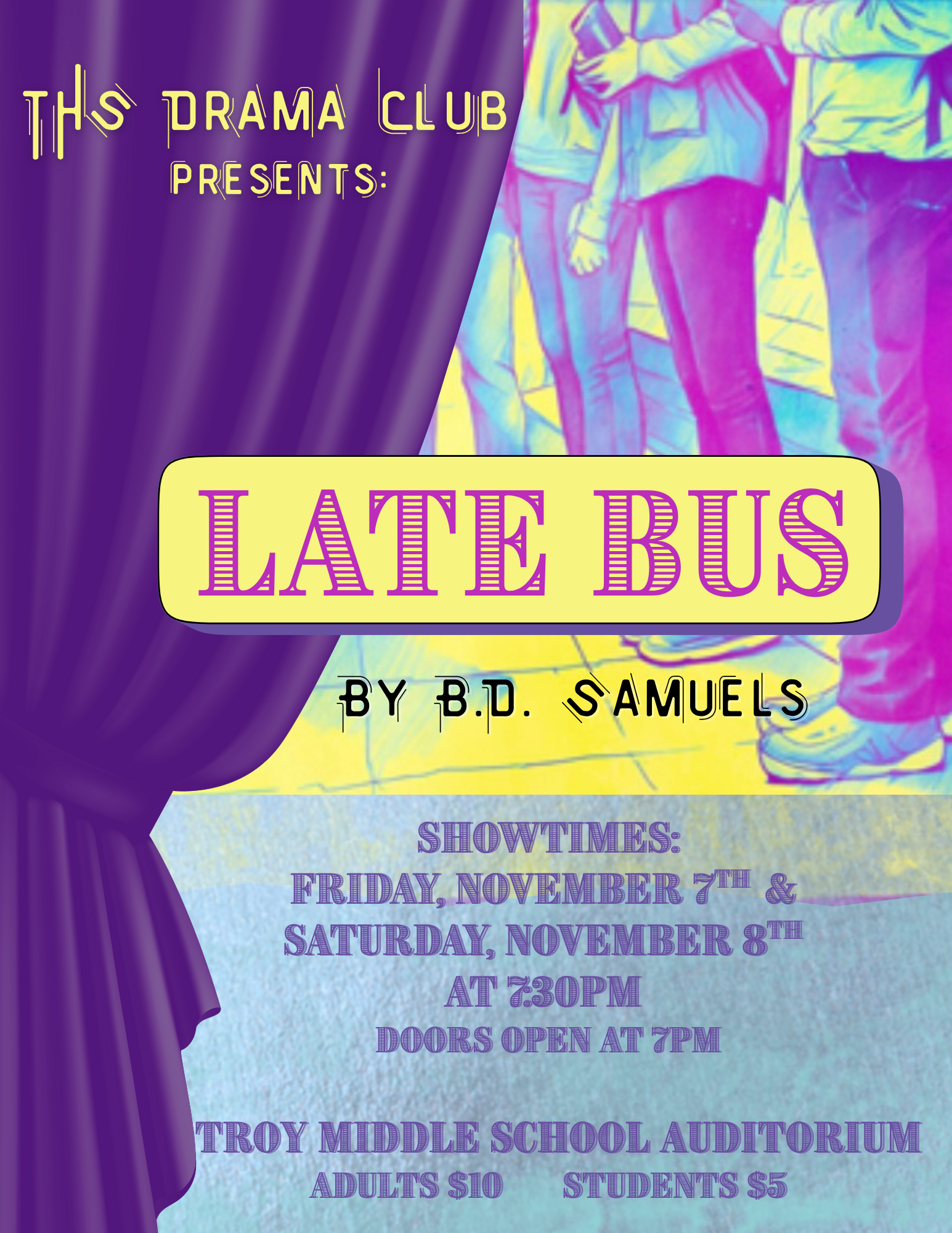 The Troy High School Drama Club invites the community to its fall production of Late Bus, by B.D. Samuels.